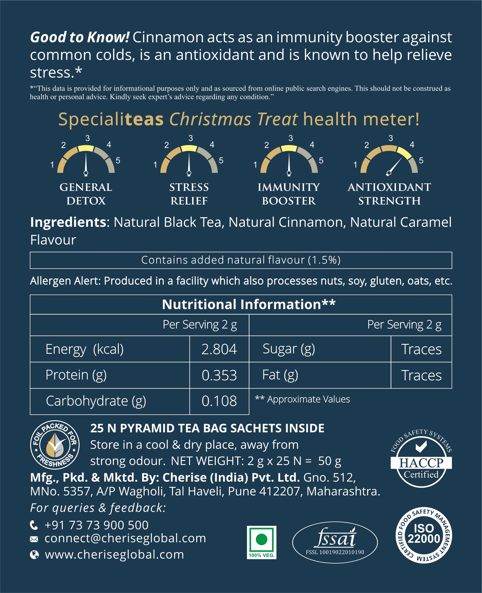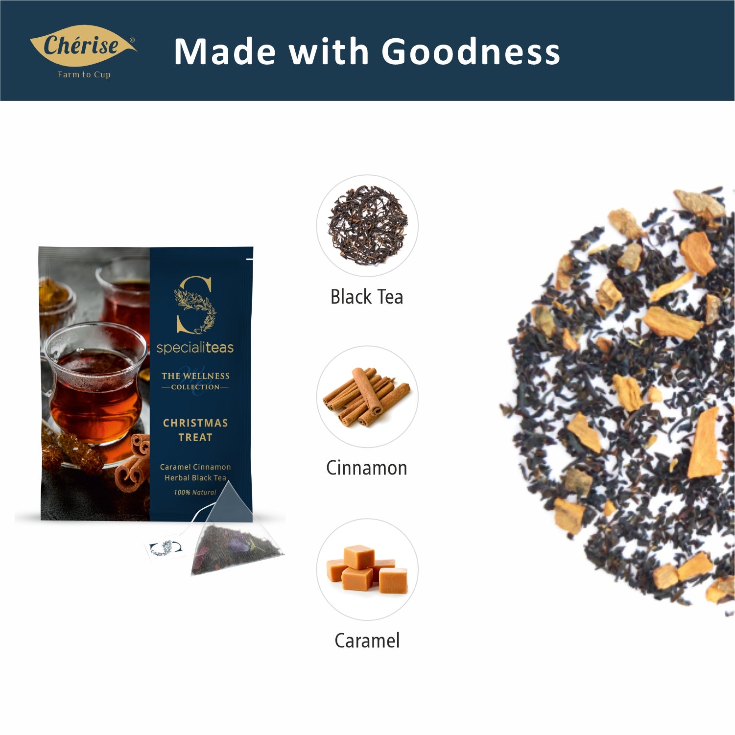 Cherise Specialiteas Christmas Treat Caramel Cinnamon Herbal Black Tea (2 g x 25 Pyramid Tea Bags)