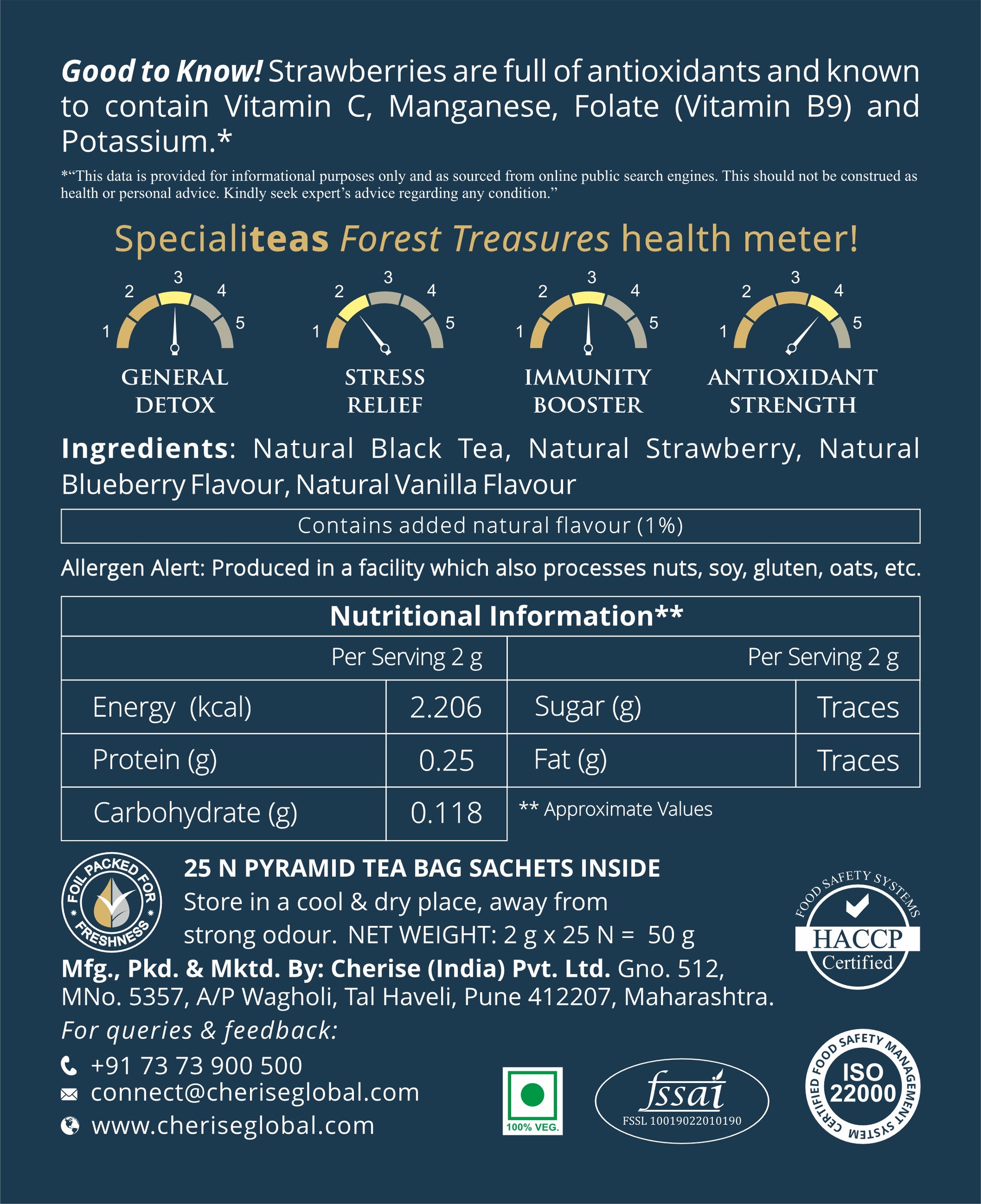 Cherise Specialiteas Forest Treasures Mixed Berry Black Tea (2 g x 25 Pyramid Tea Bags)